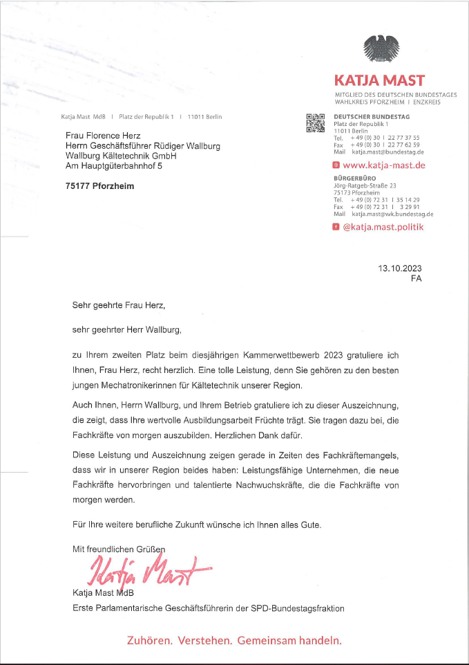 Wir gratulieren unserer Mechatronikerin für Kälte- und Klimatechnik zur 2. Kammersiegerin.